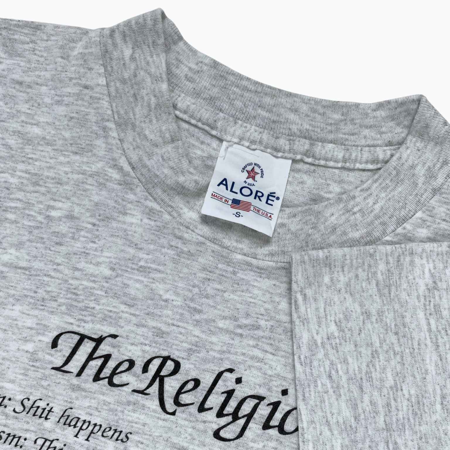 A bold religious tee from the 90s. Not sure from which religious viewpoint this tee is intended but nonetheless some hard statements across this one.